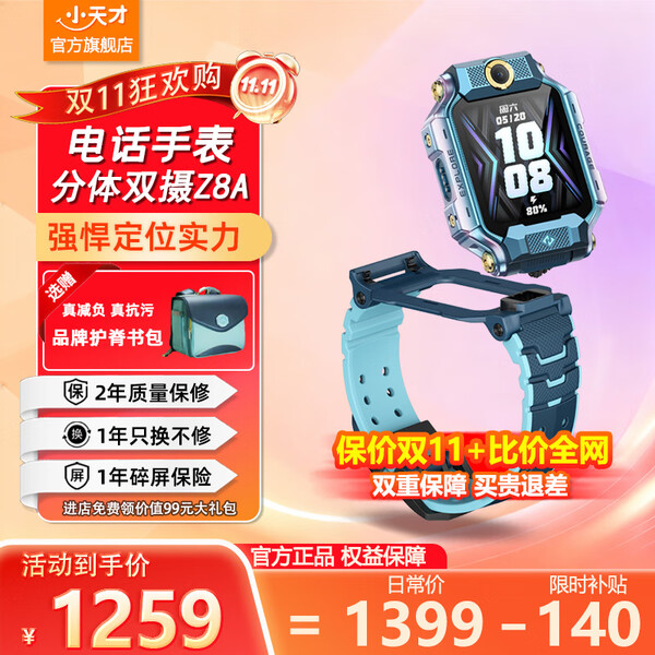 小天才儿童电话手表Z8A霞光紫 防水GPS定位智能手表 学生儿童4G视频拍照双摄手表男女表