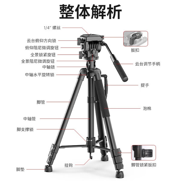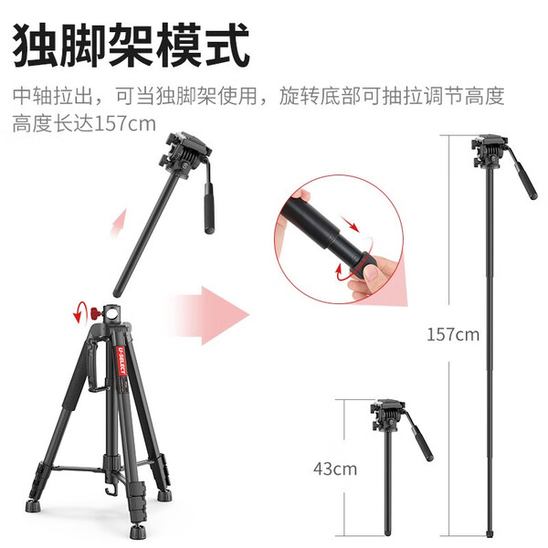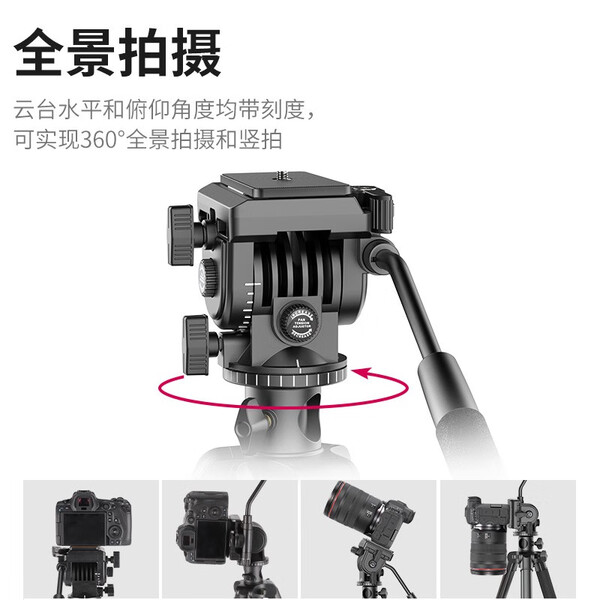 优篮子【Ulanzi】VT02铝合金三脚架全景液压云台微单反相机手机直播便携拍照摄影摄像vlog户外旅行支架 【爆款】VT-02(赠冷靴手机夹)