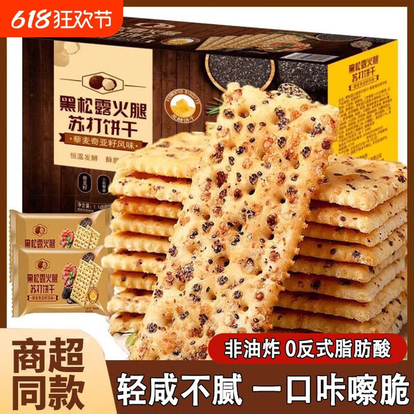 煌记黑松露火腿苏打饼干薄脆早餐代餐0蔗糖办公室孕妇零食休闲下午茶 黑松露火腿苏打饼干118g*1盒