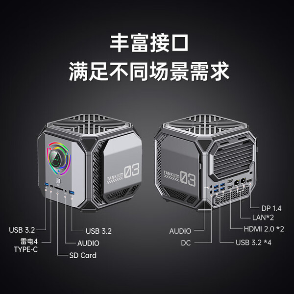 天钡GT37迷你主机AI PC高性能锐龙HX370电脑台式机 高算力电竞游戏便携MINI小型口袋整机带OCuLink接口 锐龙AI9 HX370「强大算力」 32G LPDDR5内存1TB固态硬盘
