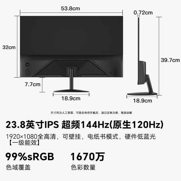 TCLF5 23.8英寸100Hz MiniLED观影电竞游戏显示器 HDR400 IPS莱茵护眼电脑显示屏 政府国家补贴 雷鸟 F5/23.8英寸/100Hz