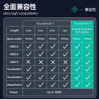 ULT-unite 雷电4线40G高速传输8K视频投屏全功能兼容USB4雷雳3笔记本电脑外接显示器 0.15米【雷电4线-40Gbps】PVC款