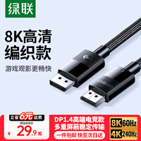 绿联(UGREEN)DP线1.4版4K144Hz 8K60Hz DisplayPort公对公8K高清连接线电脑电竞游戏显示器视频线 8K60Hz【编织款】DP1.4 1米