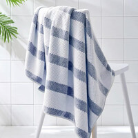 三利家用吸水速干成人男女大毛巾加大柔软裹巾条纹简约不易掉毛浴巾 靛蓝 275g
