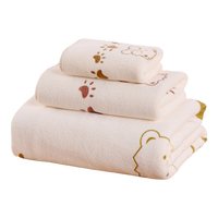 家用浴巾三件套超细纤维儿童卡通小熊洗脸毛巾轻薄透气柔软吸水 米色小熊【方巾+毛巾+浴巾】三件套
