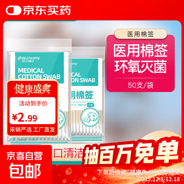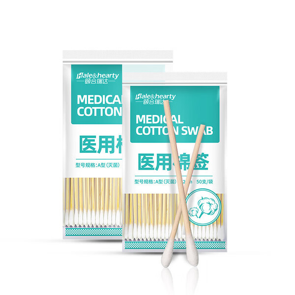无菌一次性医用棉花头棉签单头便捷伤口清洁消毒家用掏耳棉棒 10cm医用棉签(50支/包)*2