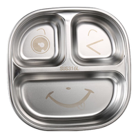 韩笑食品级316不锈钢儿童宝宝分格餐盘带吸盘式一体婴儿辅食盘学吃饭 【316钢】圆角三格