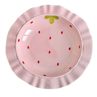 食品级草莓陶瓷餐盘可爱家用宿舍草帽盘蛋糕盘高颜值精致餐具碗盘 8.5英寸-草莓裙花边盘1个装
