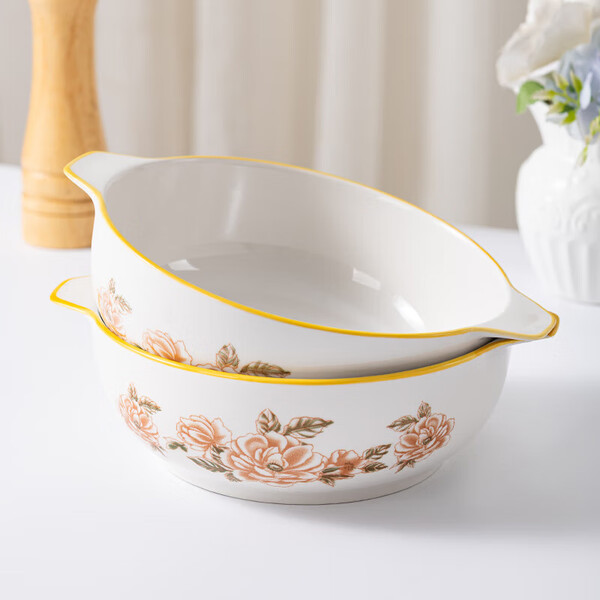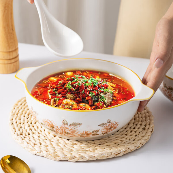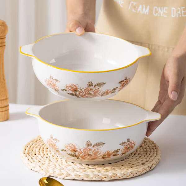 7英寸横纹碗敞口深口陶瓷碗拌面碗汤碗餐盘防烫釉下彩加厚 7英寸4个