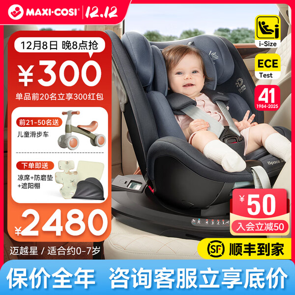 京东京造儿童安全座椅0-6-7岁婴儿宝宝i-Safe双通风加热星际舱pro星雾灰