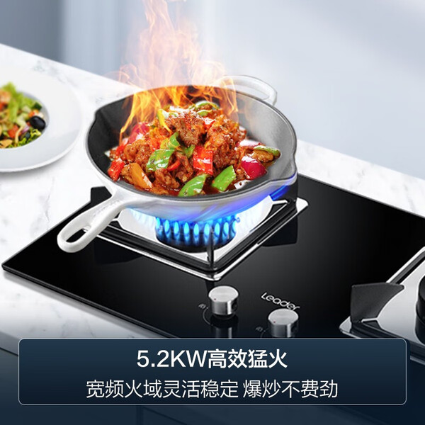 海尔(Haier)燃气灶天然气 家用嵌入式双灶5.2kw猛火 自动熄火保护 台嵌两用一级能效 可调节底壳 【Q2BE3】5.2KW天然气灶