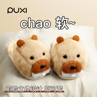 朴西土拨鼠亲子棉拖鞋女冬季可爱外穿居家防滑厚底保暖棉鞋棉拖鞋 浅棕 【棉拖】 28 【200mm】