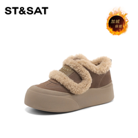 星期六厚底雪地靴女款2025新款冬季加绒魔术贴板鞋防滑加厚保暖棉鞋 杏色 【加绒保暖】跟高4cm 35