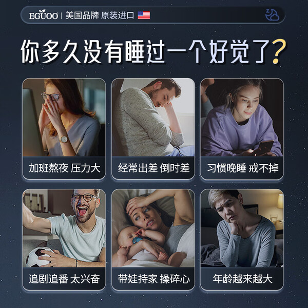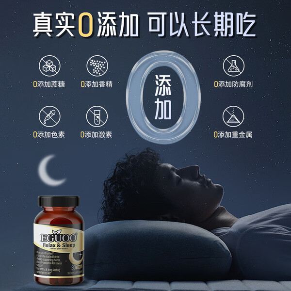 EGUOO美国品牌原装进口褪黑素舒压入眠改善睡眠缓解熬夜植萃睡眠片 30粒*1瓶