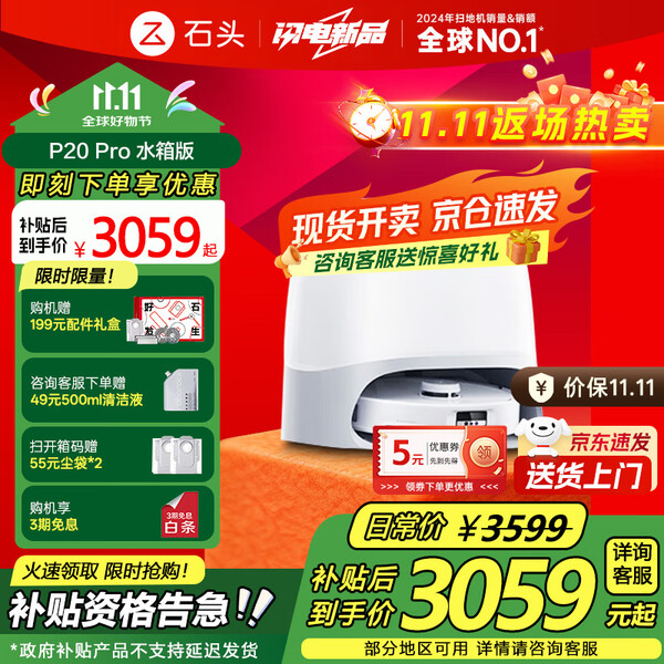 石头(roborock)扫地机器人 P20 Ultra Plus 扫拖洗烘一体机 自动集尘热水洗拖布擦地拖地洗地机吸尘器 A2250RR