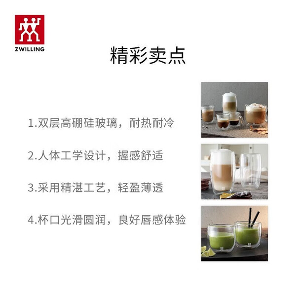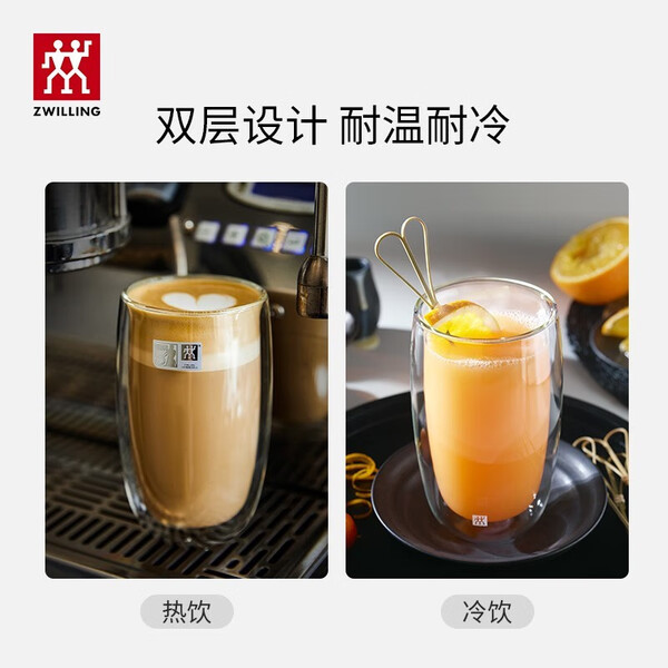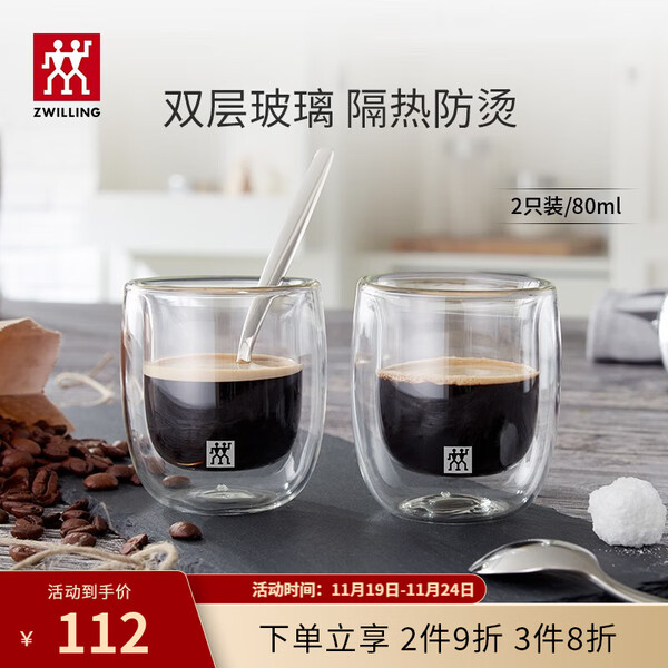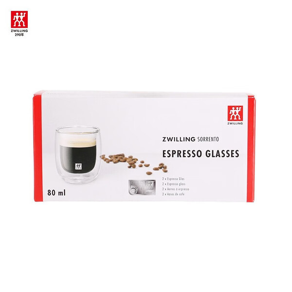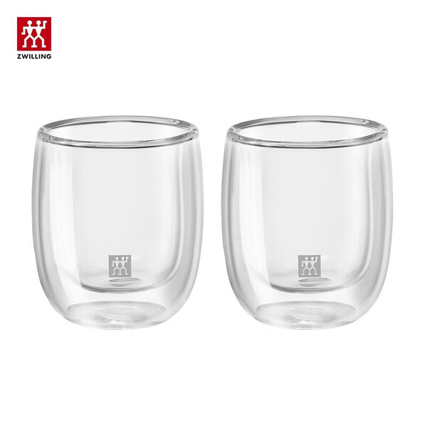 双立人(ZWILLING)水杯杯子茶杯玻璃咖啡杯拿铁杯双层隔热奶茶牛奶杯泡茶杯甜品碗 意式咖啡杯 80ml 2只