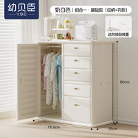 幼贝臣喂养台玩具收纳架多功能婴儿用品置物架儿童衣柜宝宝收纳储物柜 奶白色组合一基础款