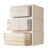 透明收纳盒抽屉式家用桌面整理盒子衣柜衣服衣物内衣裤子储物箱子 象牙白 大号【长36宽25.5高32.5CM】