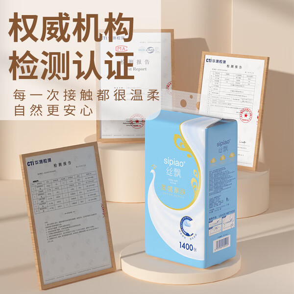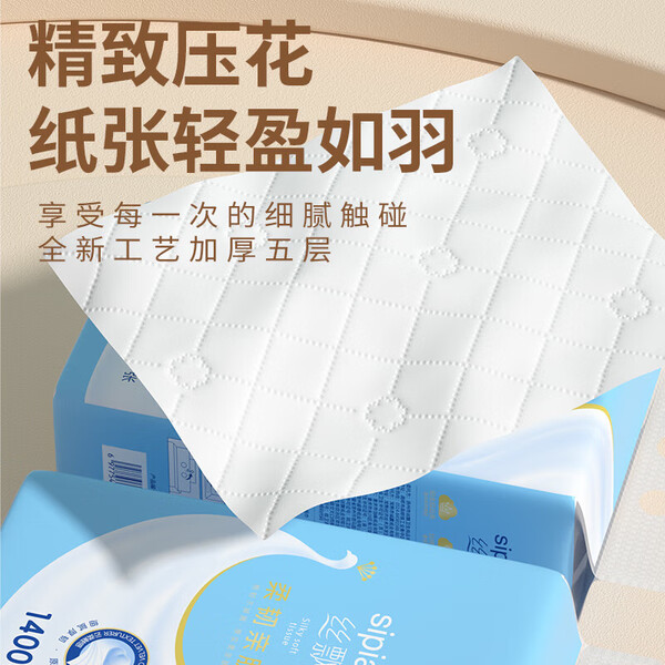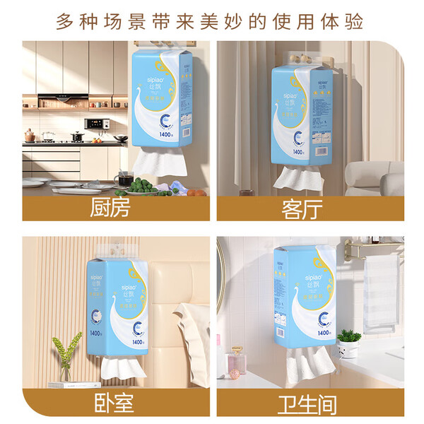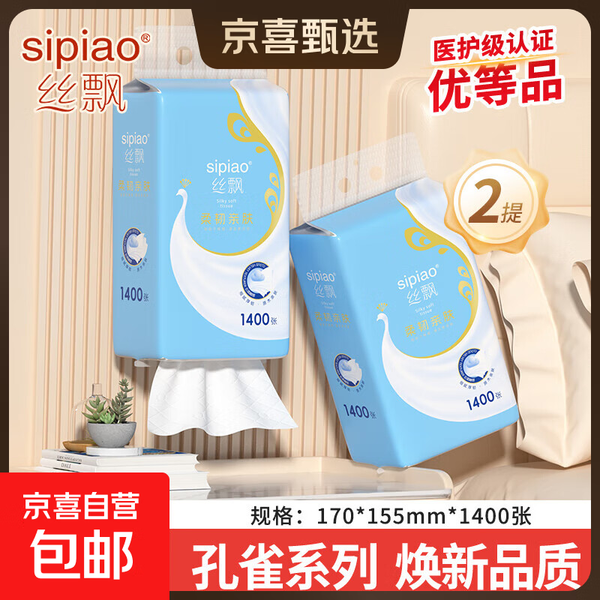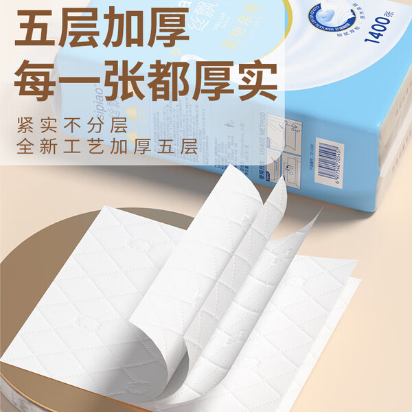 【优等品】丝飘悬挂式1400张抽纸家庭装日用抽纸卫生纸加厚高品质 5层 1400张*2包