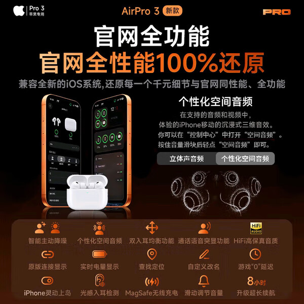 华强北新款【国家补贴丨顶配Pro3】华强北蓝牙耳机适用苹果真无线ANC主动降噪iphone17/16五代入耳式心率监测 【Pro3纯原版】1:1全功能体验丨-150db主动降噪 ANC主动降噪+测心率血氧+空间音频