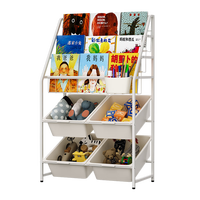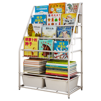 SOFS儿童书架落地绘本架宝宝铁艺小书柜简易书报杂志架书本展示置物架玩具收纳架 L码(4+2层)2盒 无轮子