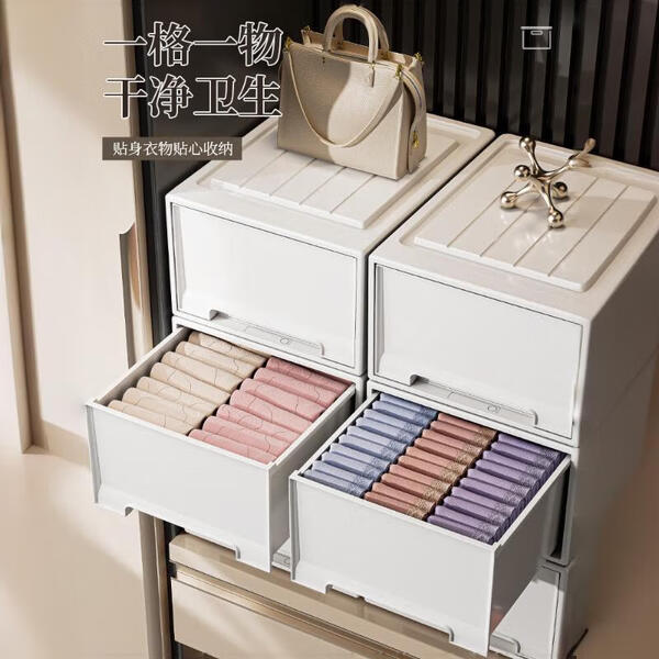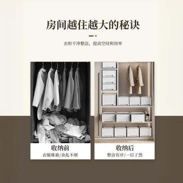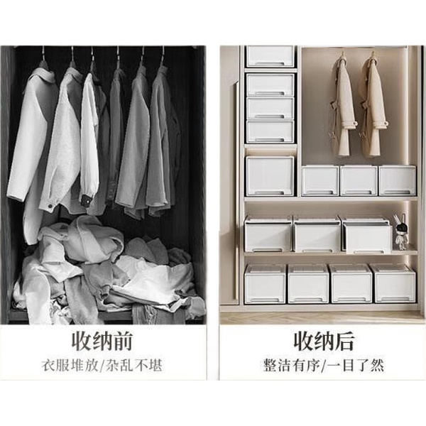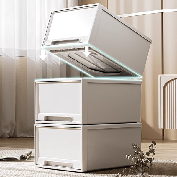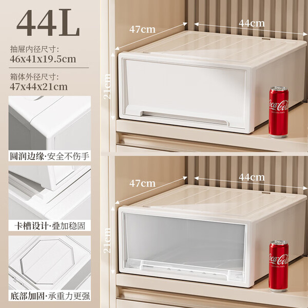 衣柜收纳箱抽屉式收纳盒家用塑料透明衣服衣物整理盒裤子储物柜 44L 47*44*21cm 白色纯白【一个装】