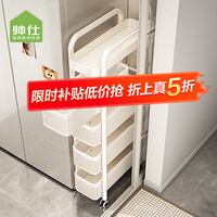 帅仕(shuaishi)厨房小推车置物架落地抽拉冰箱侧面夹缝收纳架免安装零食储物架子 白5层16宽【滑轨抽拉】夹缝收纳