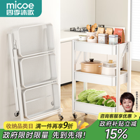 四季沐歌厨房置物架落地折叠小推车置物架免安装零食收纳储物移动果蔬菜篮 3层奶白【可折叠】常规款