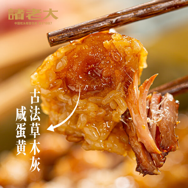 诸老大粽子短保锁鲜粽新鲜日期枕形黑猪肉长条咸粽湖州特产早餐嘉兴产 【200克*2只*3】黑猪肉粽共6只
