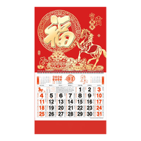 挂历2026年新款马年福字家用挂墙吊牌中国风福字金箔挂历中国红 正六开花开富贵