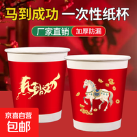 加厚纸杯一次性水杯加厚家用茶杯高档新年春节过年2026新款马年 新年纸杯【随机100只装】加厚原木纸杯
