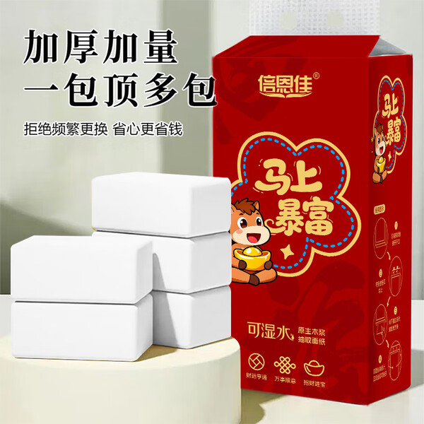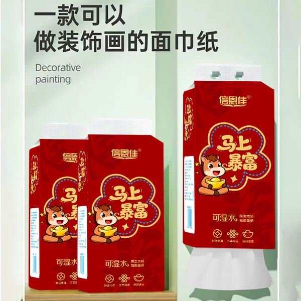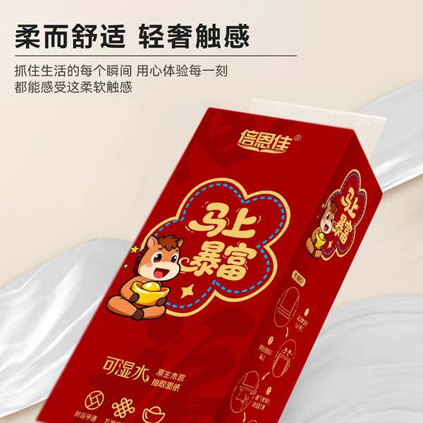 马上暴富大提挂式抽纸4层1000张抽取式纸抽卫生纸节庆婚庆用纸 【2大提2000张-500抽】-京东快递