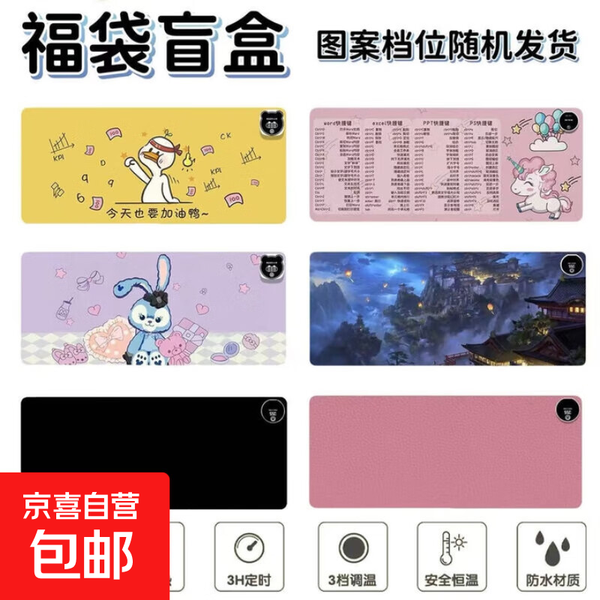 暖桌垫大号办公室电脑桌面发热垫学生写作业冬天发热垫暖手神器 蓝熊一家 80*33-6档数显定时款