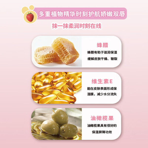小浣熊儿童缤纷果香润唇膏保湿补水滋润3-12岁宝宝润唇男女孩学生护唇膏 缤纷果香润唇膏草莓味3.8g