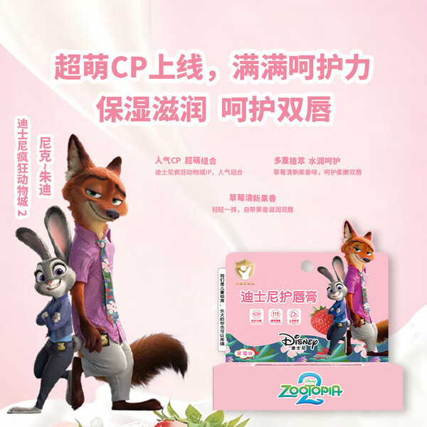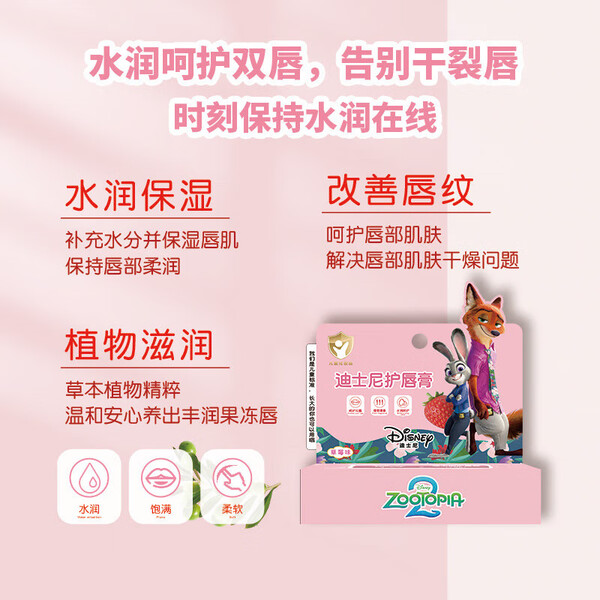 儿童唇膏疯狂动物城2保湿滋润舒缓防干裂男孩女孩专用护唇膏 草莓味2.8g*1支