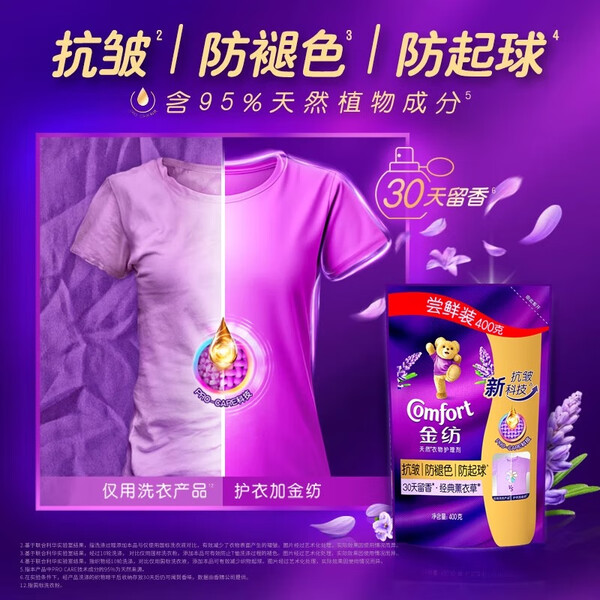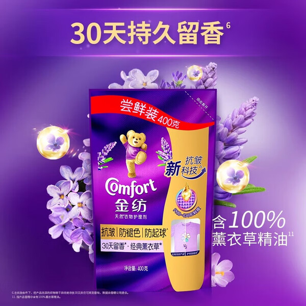金纺留香珠护衣持久留香99%除菌除螨旅行装洗衣液伴侣香水护理剂男女 【经典薰衣草】柔顺剂400g*1袋