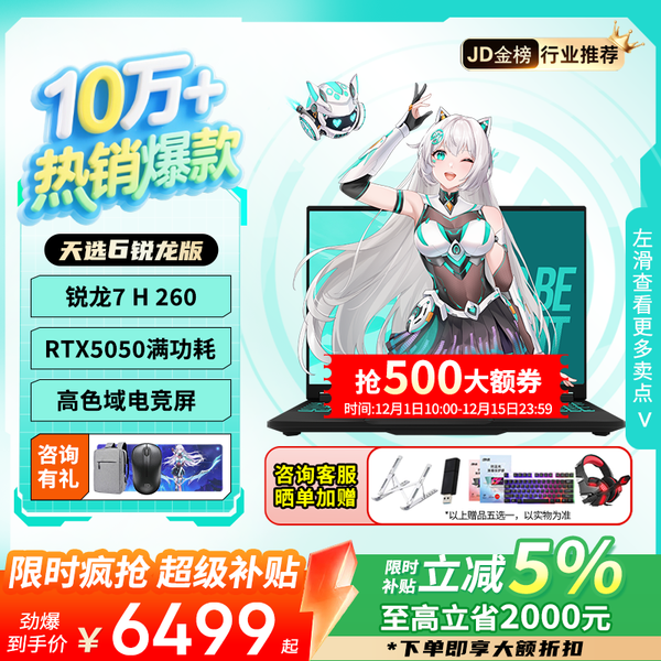华硕天选6 政府补贴 16英寸游戏本 笔记本电脑 锐龙7 H260/RTX5060/魔幻青 16G内存/1T高速固态硬盘 2.5K 16:10高刷高亮高色域电竞屏