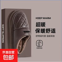 厚底新款家居室内保暖鞋加绒高档棉拖鞋男冬季包头拖男皮拖鞋男士 咖色 42-43