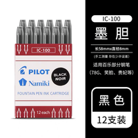 百乐(PILOT)IC-50/100非碳素墨水胆替芯 78G/88G/贵妃50r/笑脸钢笔墨胆 黑色12支装/盒 IC-100-B