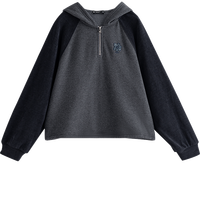 初语卫衣女2025冬季新款连帽撞色插肩袖绿绒蒿美式复古加绒上衣 深灰色 S