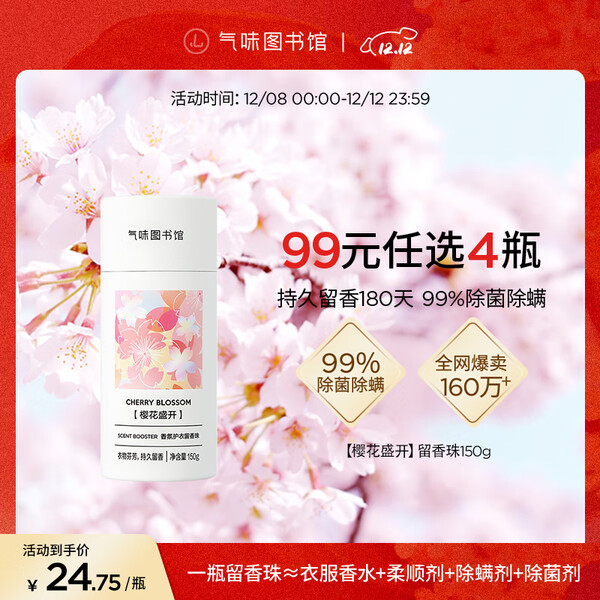 气味图书馆护衣留香珠【梦幻少女】樱花盛开150g,专为洗衣设计,带来持久清新樱花香。独特配方赋予衣物柔和花香,同时具备除菌除螨功能,有效呵护健康。使用方便,只需在洗涤时加入适量,即可让衣物散发自然芬芳,提升穿着舒适感。产品优势在于长效留香技术,使甜美樱花香持续释放;兼顾杀菌除螨,减少细菌和螨虫滋生,为敏感肌肤提供保护。小巧包装便于携带和存储,日常及旅行均适用。购买建议:推荐注重生活品质、喜欢淡雅花香且希望增强衣物护理效果的用户,与常规洗涤剂搭配使用,实现洁净与芳香双重享受。