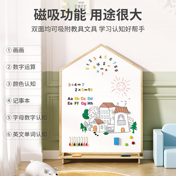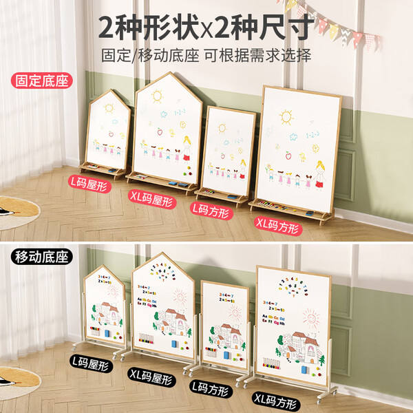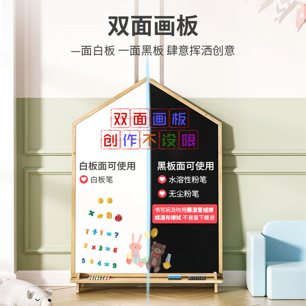 SOFS磁性画板可擦写双面儿童画板宝宝幼儿涂鸦小黑板家用白板写字板画画板绘画架 【屋型】L码 无底座
