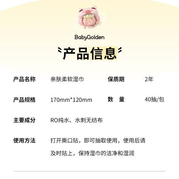 蓝漂湿巾纯水家庭装婴儿手口屁专用大包 40抽*2包