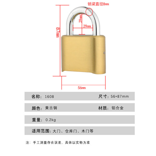 奥本密码锁 大号挂锁学生宿舍锁室内外门锁 防水防锈金属锁1608