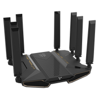 ROG GT-AX11000 Pro采用了八根粗壮的外露天线,正面采用了点阵式RGB的“ 败家之眼 ”LOGO灯,支持七种电竞灯效,支持Aura RGB神光同步。搭载满血万兆(10Gbps)网口,配备四核 2.0GHz 博通处理器,内存为 1GB,闪存为 256MB,拥有两个 5G 频段外加 2.4G 频段,无线总速率可达 11000Mbps。这款路由器支持可提供 U-NII4 支持,为适配的设备提供额外 160 MHz 频带,四个 1G LAN 口支持开启链路聚合功能,除了价格有点小贵,是电竞玩家的终极之选。