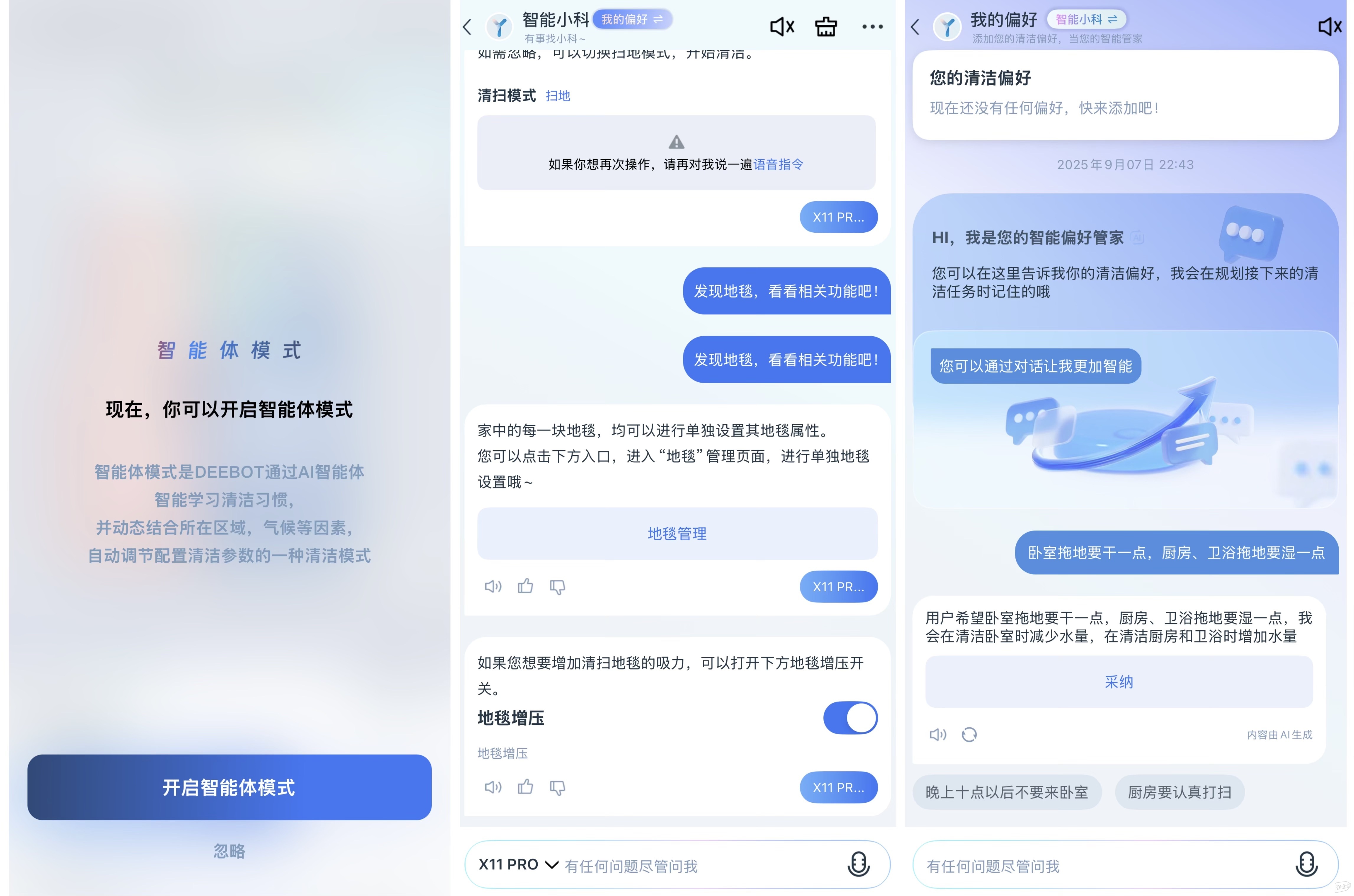 作为一个长期使用扫地机器人的人,这台X11 Pro的整体使用感受十分友好,小科智能体从日常清洁到场景陪伴都有覆盖,也让我切实感受到科沃斯的确有在认真关注用户实际体验,人文关怀十足。