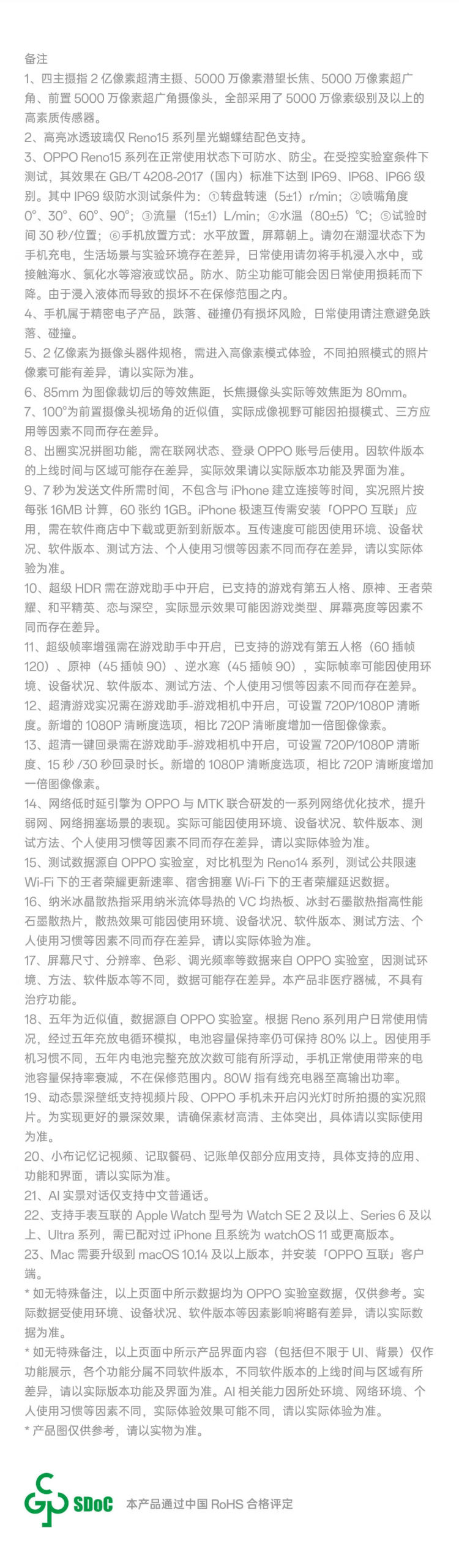 | 后置摄像头3 | 5000万像素,潜望长焦摄像头:f/2.8,等效焦距 80 毫米,4P镜头,支持两轴OIS防抖 |