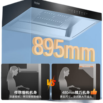 海尔24大吸力新欧式家用油烟机 深潜形态 强劲吸烟 挥手感应 高频自清洁 【单烟机】24大吸力深潜近吸