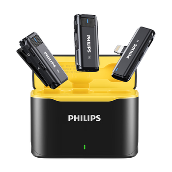 飞利浦(PHILIPS)【国家补贴】无线领夹麦克风一拖二直播收音麦vlog主播户外短视频采访直插式降噪话筒DLM3545V
