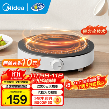 美的(Midea)电磁炉大功率电磁炉小型 大线圈 大火力 匀火旋钮调节 迷你易收纳 宿舍火锅炉 【恒匀火|易收纳】2200w 六档火力